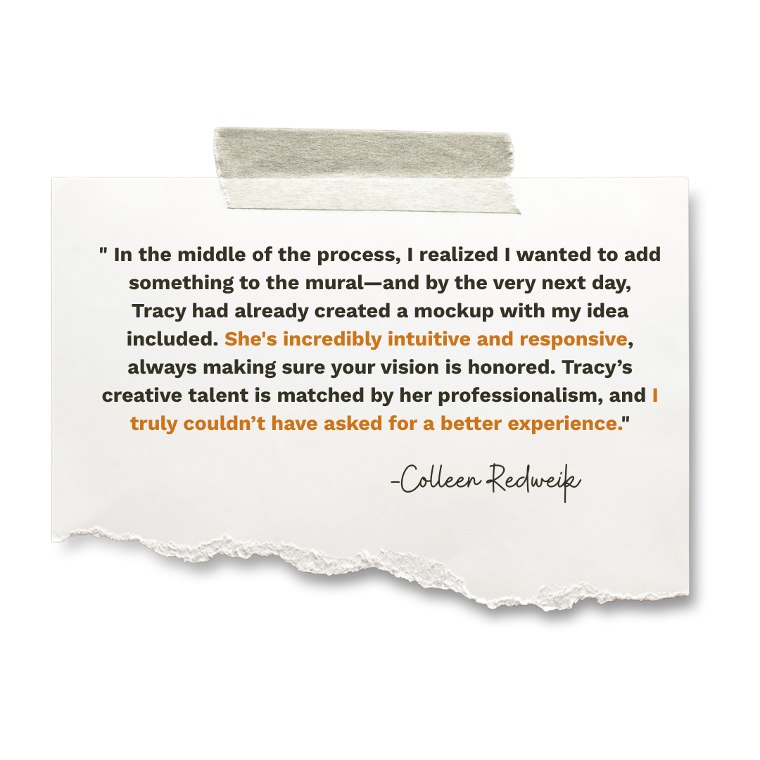 At Tracy Danet Studio, each mural and painting begins with your story — the colors, memories, and emotions that make a space feel alive. Through a collaborative process, I invite you to be the muse, co-creating art that is both a reflection of my craft and your identity. The result is something lasting: a piece that doesn’t just decorate a wall, but connects deeply with the people who live and gather there.